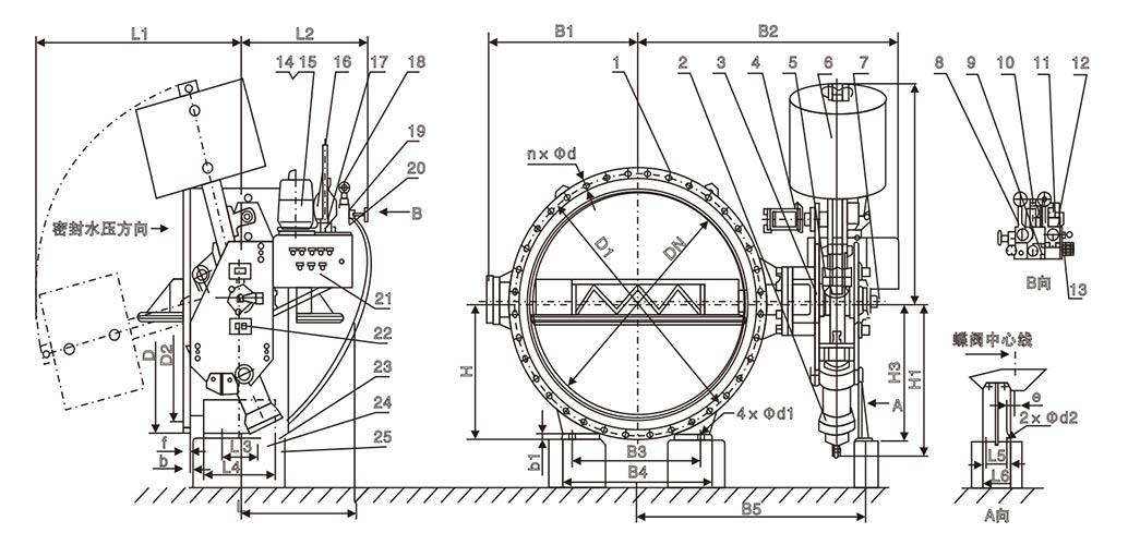 | 公称通径(mm) | L | D | D1 | D2 | b | f | n | d | L1 | L2 | L3 | L4 | H | H1 | H2 | B1 | B2 | B3 | B4 | b1 | d1 | |||
